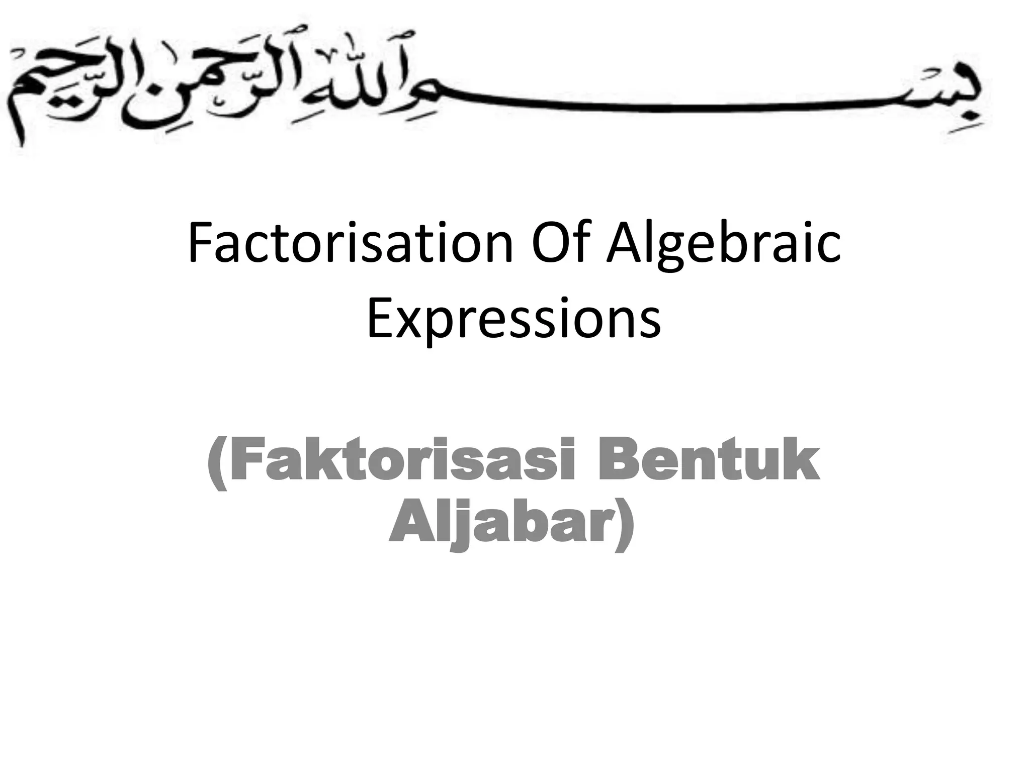 Dokumen ini membahas tentang faktorisasi bentuk aljabar dengan mengacu pada hukum distributif, di mana suku-suku dengan faktor persekutuan dapat difaktorkan. Terdapat juga latihan dan solusi terkait faktorisasi, serta penekanan pentingnya matematika dalam membuka pilihan pengetahuan bagi siswa. Buku ini ditujukan untuk pelajaran matematika bilingual bagi siswa SMP/MTS.