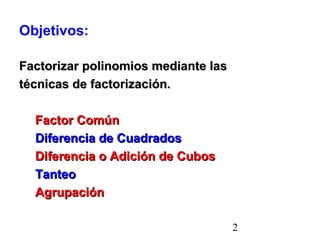 Aclaración: La factorizaciónes el