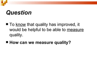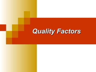 The document emphasizes that quality factors should be defined in requirements and measuring them indicates where improvement is needed.