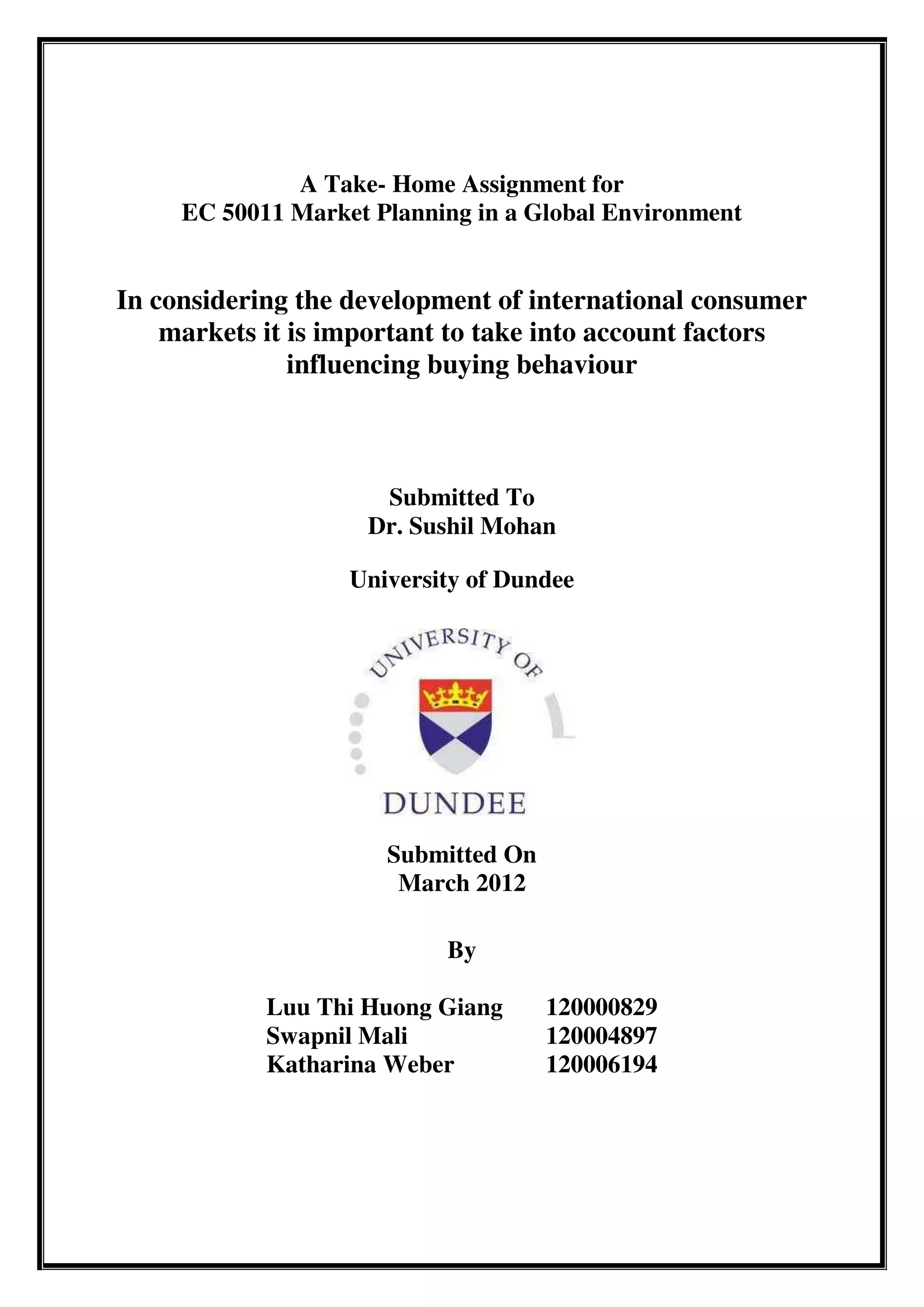 This document provides an overview of factors that influence consumer buying behavior in international markets. It discusses cultural, social, personal, and psychological influences. Cultural influences include values that are shared within a society. Social influences come from reference groups, family, and social class. Personal factors relate to demographics like age, gender, and lifestyle. Psychological influences include motivation, perception, learning, and memory. Understanding how these various factors differ between cultures and impact decision making is essential for marketers developing strategies in global consumer markets.