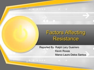 The document discusses several factors that affect resistance in conductors: