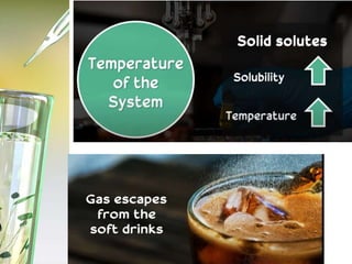 The document outlines a daily task and lesson plan to teach students about the factors that affect solubility. The teacher will demonstrate how different factors like temperature, pressure, particle size, stirring, and concentration impact solubility. Students will learn through a teacher demonstration, group activities at stations, and a review of concentrations and key questions about what influences solubility.