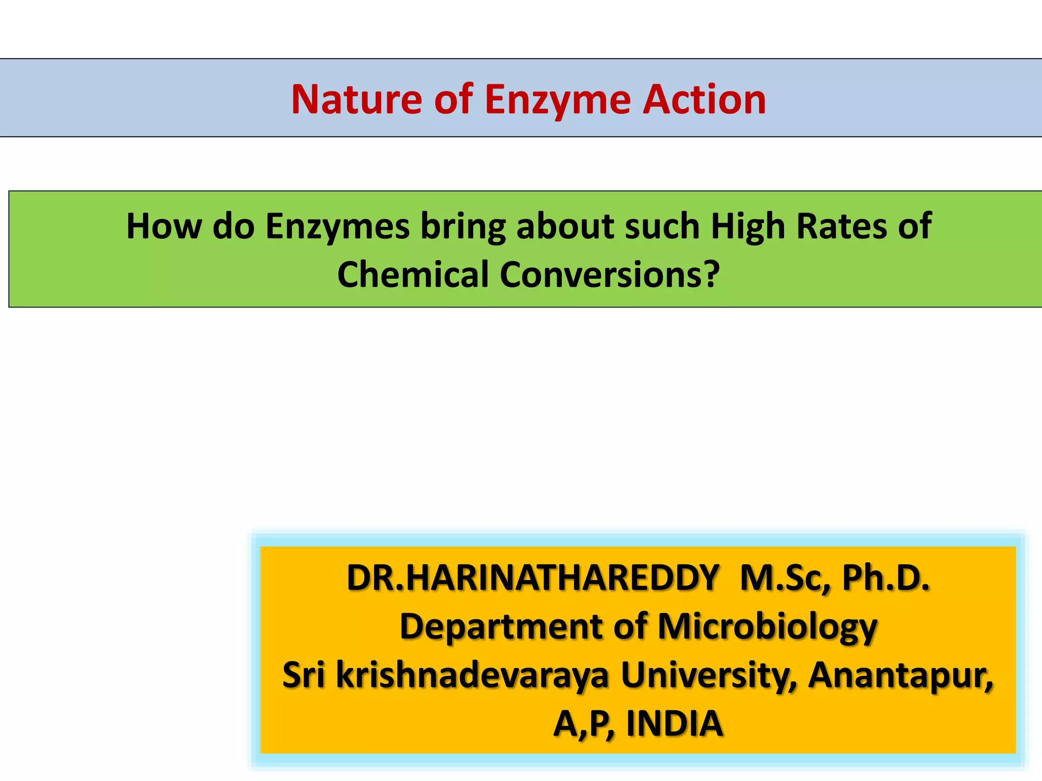 Enzymes bring about high rates of chemical conversions through three key mechanisms: