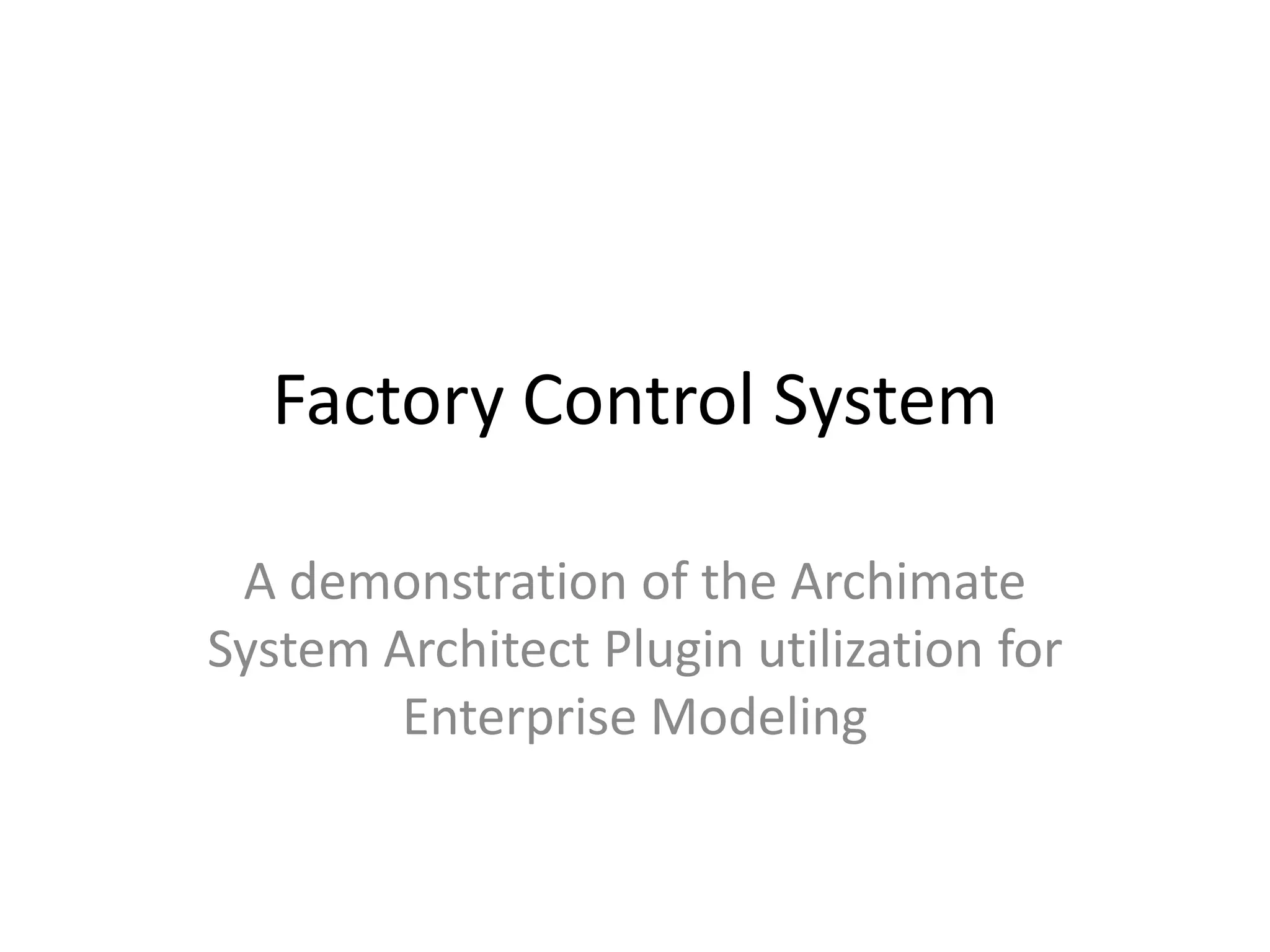 The document outlines the utilization of the ArchiMate system architect plugin for enterprise modeling within a factory control system, emphasizing a structured approach to manufacturing information flow, including manpower, machinery, methods, and material. It describes the hierarchical layers of enterprise architecture: business, application, and infrastructure, detailing their interrelations and functional roles in controlling production, inspections, and service requests. Various diagrams illustrate the operational processes, focusing on work orders, job shop control, and performance metrics for efficient manufacturing operations.
