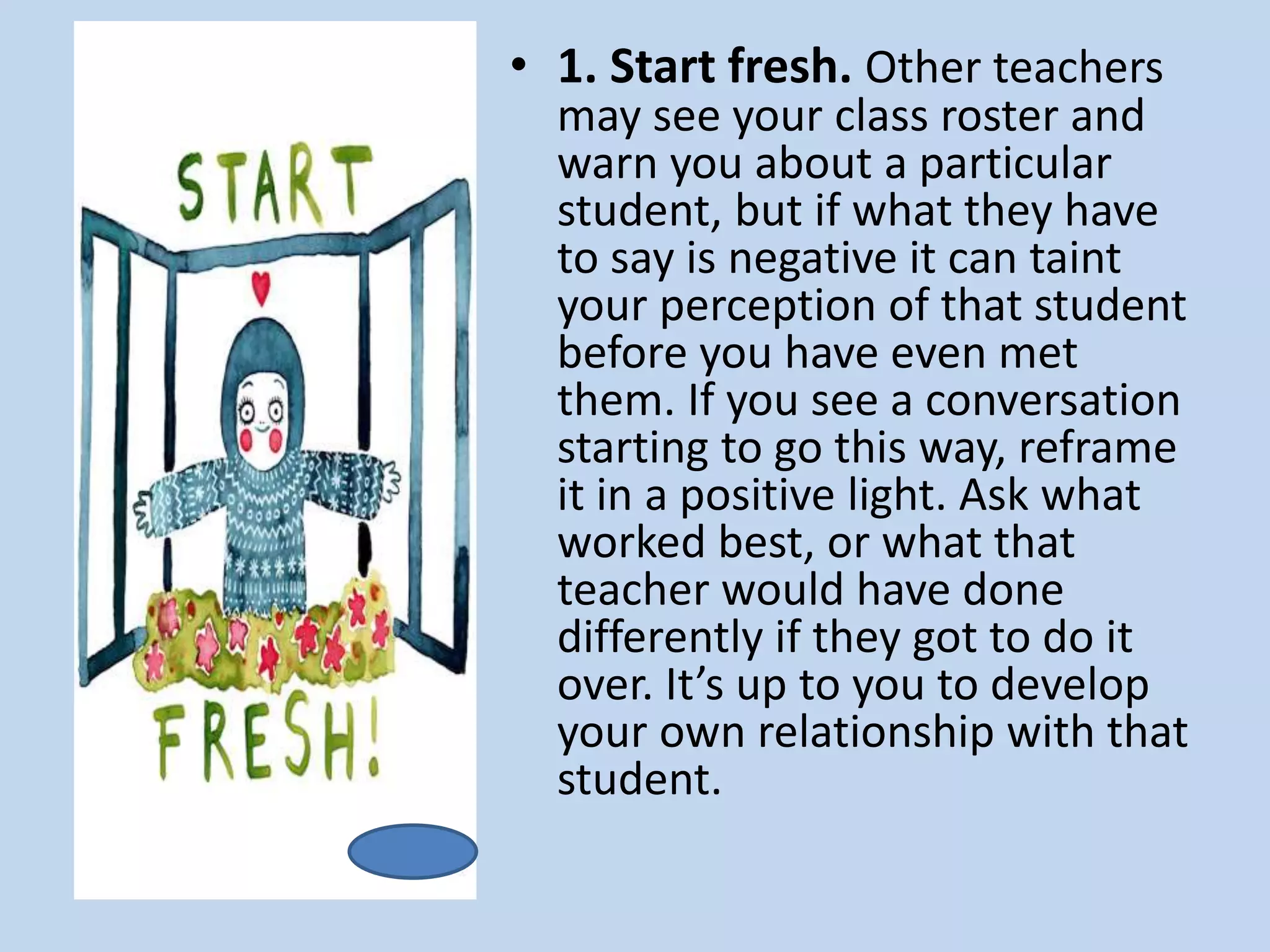 1. Start fresh with each student and avoid preconceptions based on past teachers' comments.