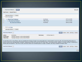 The document outlines best practices and expectations for instructors teaching online courses at Open Campus, including hosting virtual office hours, participating actively in discussion boards, providing timely grades and feedback, maintaining regular communication with students, and having courses ready before the start date. Instructors are expected to create a supportive learning environment for students and be available to engage with students several times per week to ensure quality online experiences that are consistent for all students.