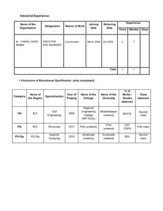 This resume is for Fagurudeen Mohamed, an Assistant Professor of Civil Engineering with over 5 years of experience in teaching and 2 years of experience as a site engineer in Saudi Arabia. He has a B.E. in Civil Engineering, M.Tech in Structures, and PG Diploma in Quantity Surveying. He is seeking a position as a Cost Engineer/Estimating Engineer with experience in construction project management. He is available for a face-to-face interview with Aramco in Chennai.