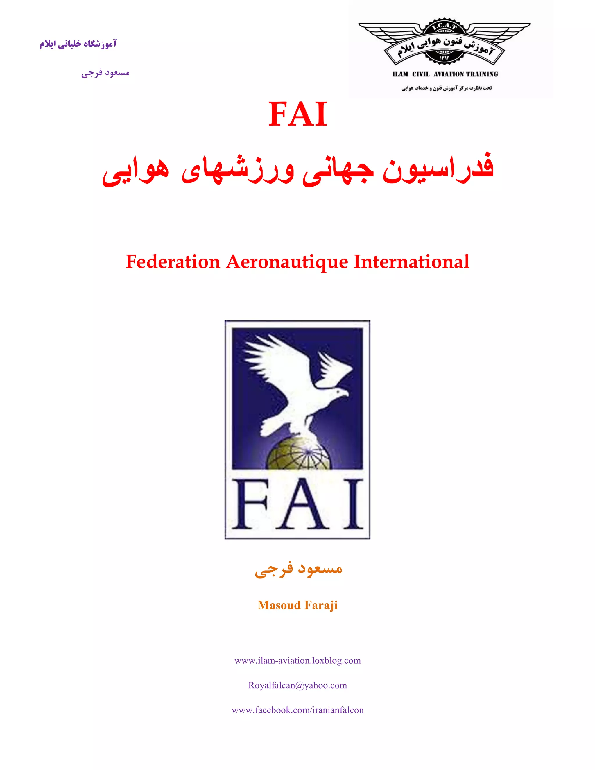 مسعود FAI هوایی ورزشهای جهانی فدراسیون Federation Aeronautique International فرجی مسعود Masoud Faraji www.ilam-aviation.loxblog.com Royalfalcan@yahoo.com www.facebook.com/iranianfalcon