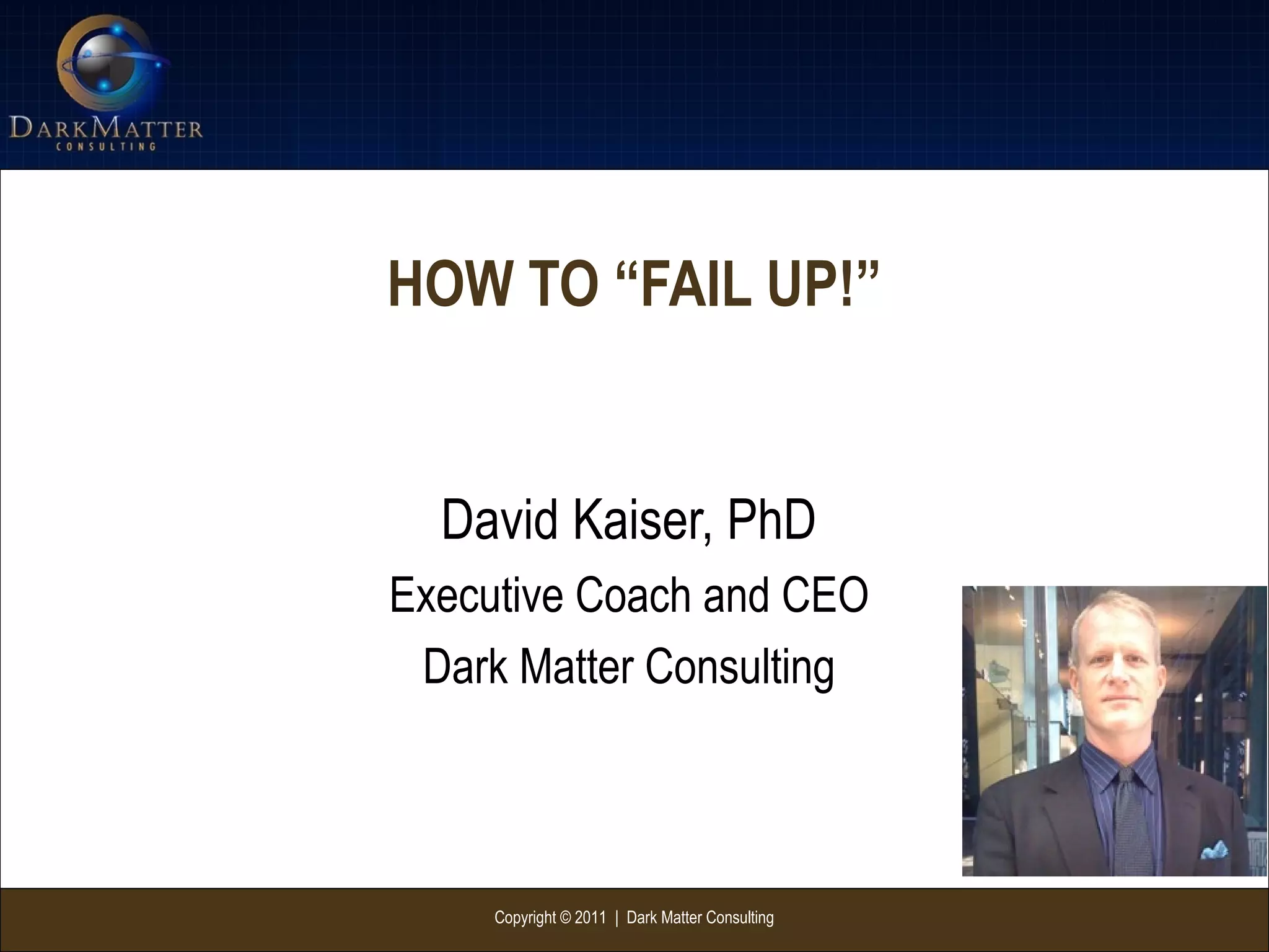 The document by David Kaiser emphasizes the idea that failure is not inherently negative, but rather a crucial part of personal growth and learning. It encourages readers to reassess their perceptions of risk and failure, suggesting that embracing challenges can lead to unexpected blessings and opportunities. Kaiser shares tools to build resilience, assess risks, and encourages daring individuals to pursue their visions despite fears.
