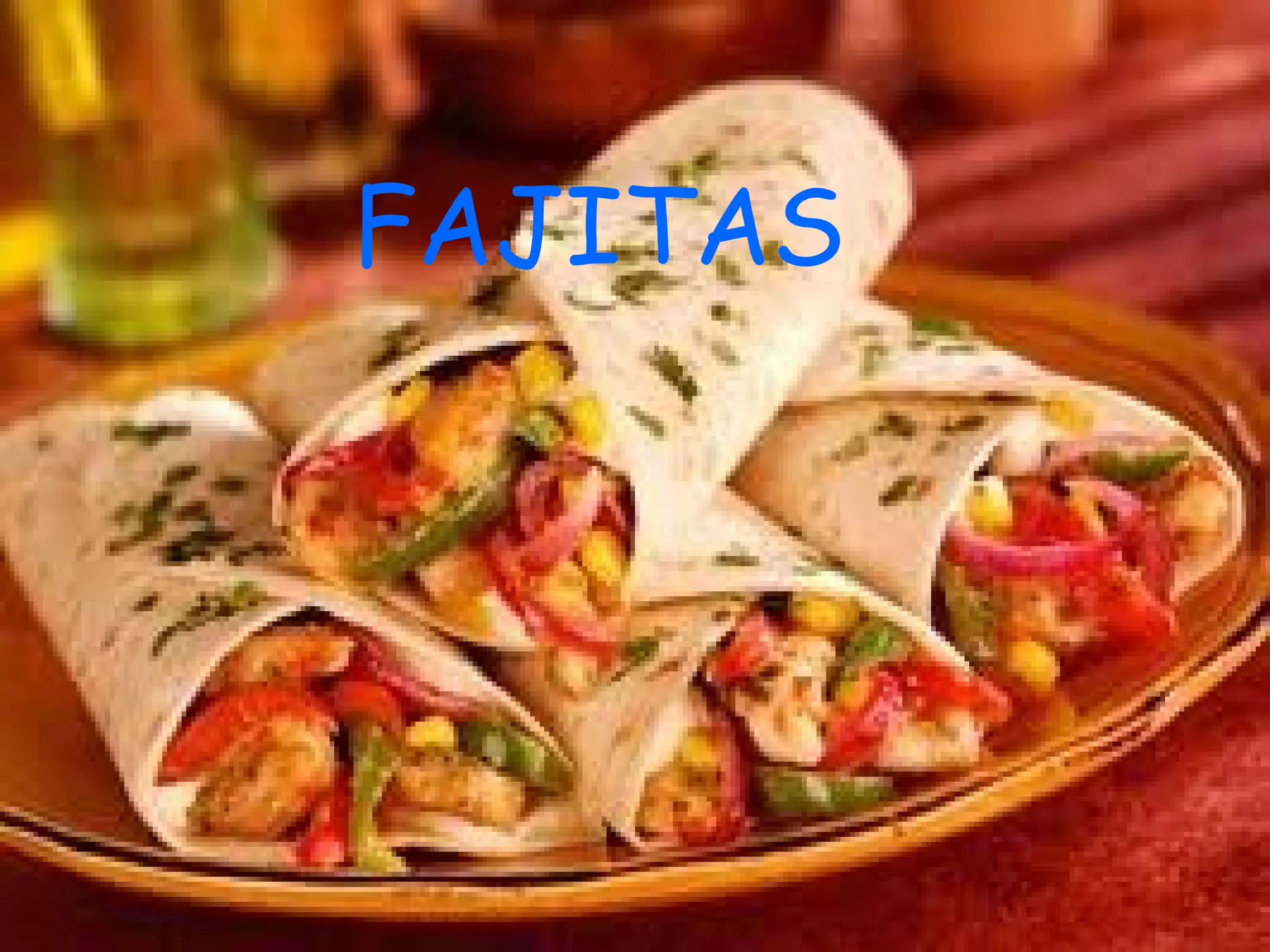 The document provides instructions for making fajitas, a traditional Mexican dish. It lists ingredients like chicken, peppers, and cheese and tools needed like a bowl and blender. The preparation steps are described as simply mixing bread and flour, cutting chicken and other ingredients, and mixing the fajita mix with ingredients. Fajitas are described as a popular food in Mexico where the cuisine is typically spicy due to the people enjoying chilies.