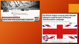 The document discusses the history and reasons for fake news, how to identify it, and efforts by search engines and social media platforms to curb its spread. It notes that fake news has existed for centuries, often for financial or propaganda reasons. Recent examples spread for clicks and advertising revenue. The document outlines techniques for verifying news claims, such as checking dates, sources, images and details. It acknowledges challenges given platforms often promote engaging content that confirms biases. Search engines and Facebook are working on solutions but their algorithms remain imperfect and sometimes promote false stories.