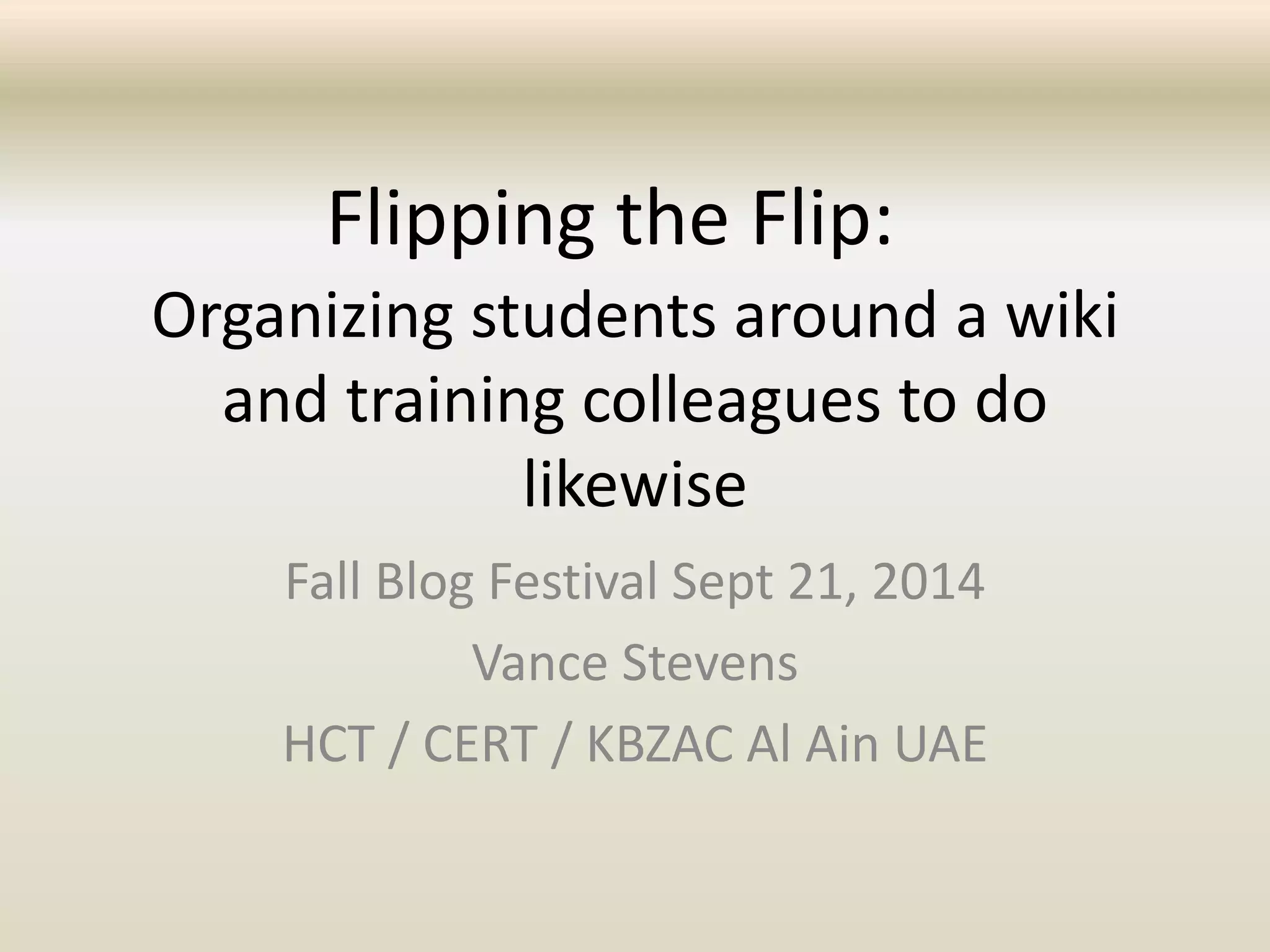 The document discusses the integration of wikis in educational settings, focusing on their organizational benefits for both students and teachers. It highlights a presentation by Vance Stevens at the Fall Blog Festival 2014, where he shared methods for creating collaborative wikis to enhance learning experiences. The content emphasizes the advantages of wikis, such as archiving, clarity in assignments, and fostering collaboration among educators.