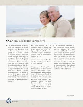 This quarterly investment advisory newsletter provides a summary of the volatile market conditions in Q3 2011. Key points include: