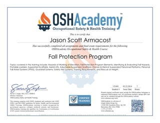 Hazards of Working at Elevation | Fall Protection Program | Elements Identifying and Evaluating Fall Hazards | Portable Ladders | Supported Scaffolds | Aerial lifts | Adjustable-suspension Scaffolds | Cranes and Derrick Suspended Personnel Platforms | Guardrail Systems | Personal Fall Arrest Systems (PFAS) | Safety Net Systems | Training Requirements Rescue at Height