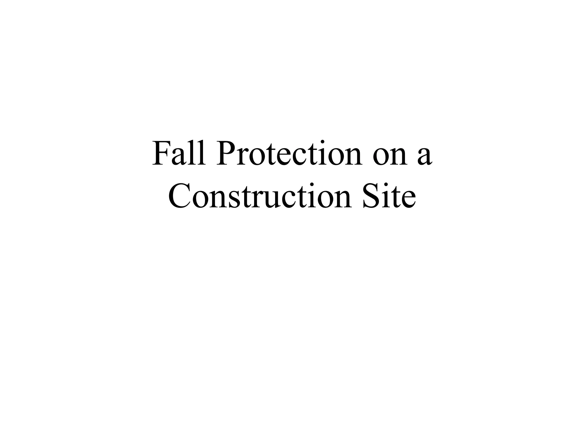 This document discusses fall protection on construction sites. It notes that falls are the leading cause of death in construction and most fatal falls occur from open-sided floors or through floor openings. It provides guidance on fall protection options like guardrails, safety nets, and personal fall arrest systems. Fall protection is required for any work from heights over 6 feet, including on walkways, ramps, open sides/edges, holes, roofs, excavations, wall openings, and residential construction. Ladders must be properly secured, inspected for defects, and climbed safely to prevent falls.