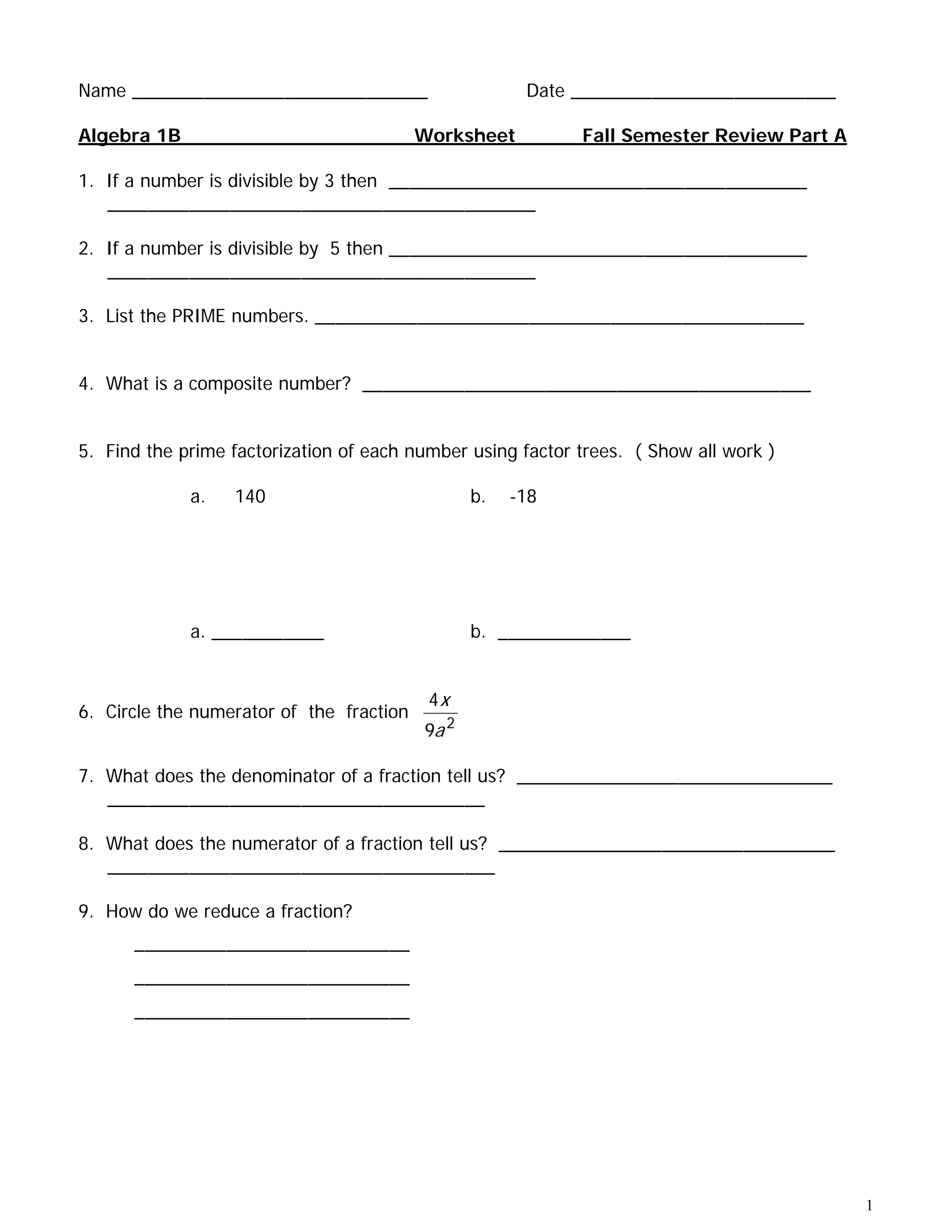 3) Simplifying expressions with fractions, adding, subtracting, multiplying, and dividing fractions.