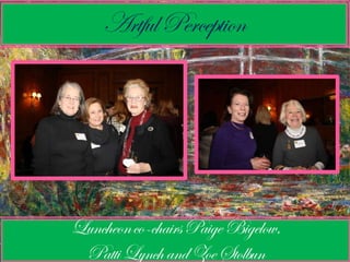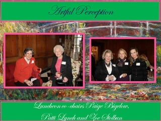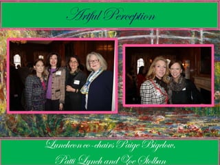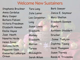 This document provides information about upcoming events for sustainers of an organization, including lecture luncheons on fashion and design topics from October to January. It lists the names of new sustainers and provides details on location, dates, costs and RSVP information for each event. Event topics include the career of Diana Vreeland at Vogue magazine, a talk and fashion show by designer Nina McLemore, and lectures on debutante culture, the ocean liner SS Normandie, and American fashion designer George Stacey.