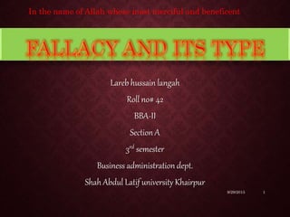 This document defines and provides examples of common logical fallacies. It discusses 12 different types of fallacies: overgeneralization, false cause, weak analogy, circular reasoning, false dilemma, appeal to authority, appeal to pity, begging the question, appeal to ignorance, ad hominem, non sequitur, and defines each as using defective or invalid reasoning in arguments. Examples are provided for most of the fallacies to illustrate how each invalid argument form manifests.