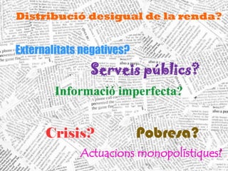 la renda? Externalitats negatives? Serveis públics? Informació imperfecta? Crisis? Pobresa? Actuacions monopolístiques?