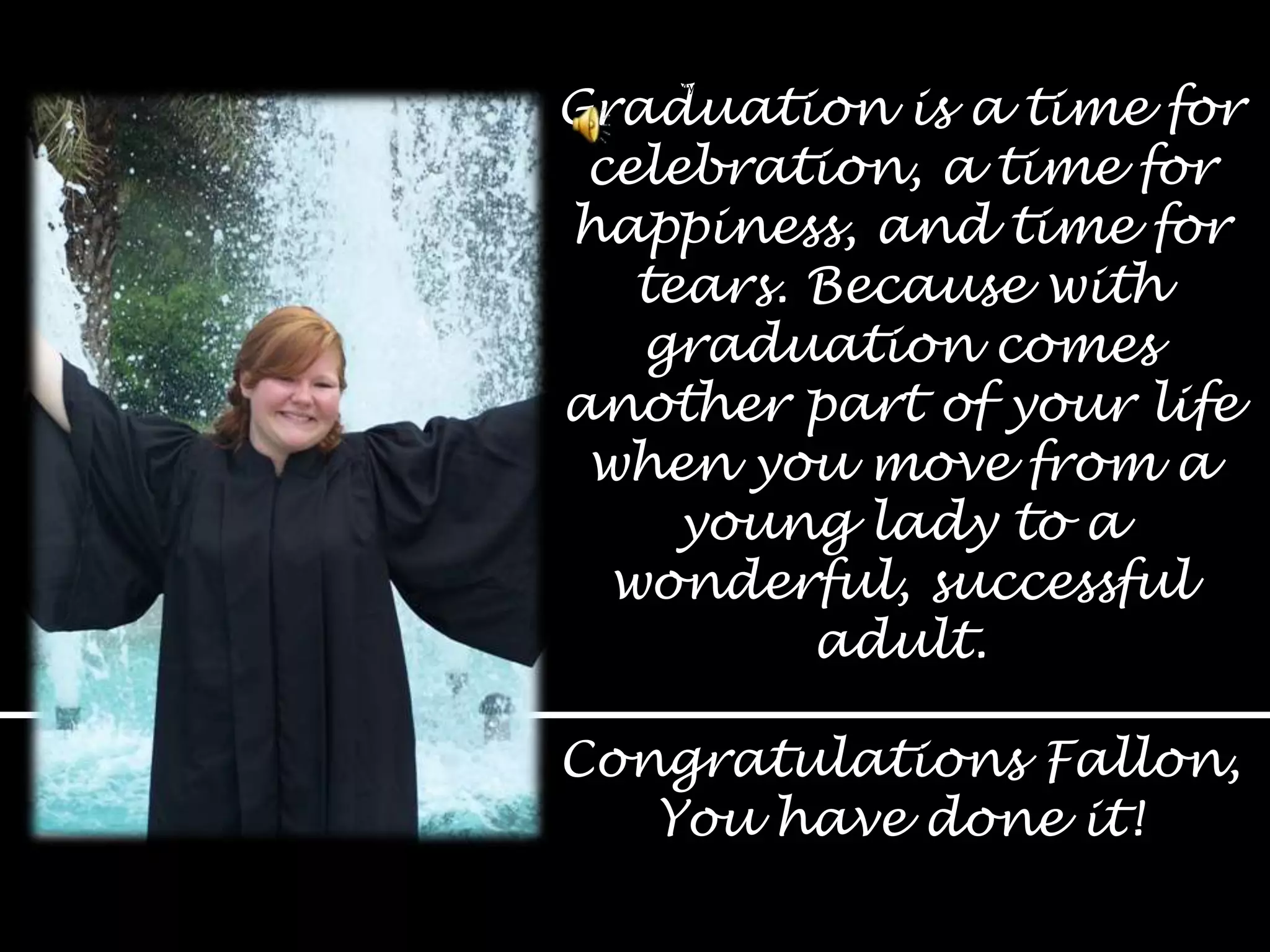 Graduation is a time of celebration, happiness, and tears as it marks the transition from young adulthood to independence. The document celebrates Fallon's graduation from college and wishes her luck and success in her future endeavors from friends and family.