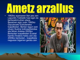 1982ko azaroaren 9anjaio zen Lapurdin.Txikitatik hasi egin da bertsoekinLehen plaza Besainen egin zuen 1992ko Gipuzkoako Eskolarteko txapelketan. Bertan lagun izan zituen Sustrai kolinaadiskidea eta Miren Artetxe 2005ko Bertsolari txapelketen Euskal harriko finalera heldu zen eta 2009ko bertsolari.. txapelketa nagusian bigarren geratu zen Ametz arzallus