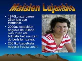 1976ko azaroaren 26anjaio zen Hernanin. 2009az txapeldun nagusia da. Bilbon ikasi zuen eta txikitatik beti nai izan du bertsilari izatea. 2001ko txapelketa nagusia irabazi zuen. Maialen Lujanbio