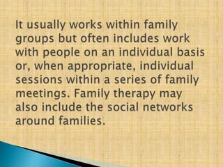 Patricia Minuchin has worked to bring developmental perspectives to clinical family work and systemic perspectives to psychological research. Her book "Working with Families of the Poor" outlines a developmental systemic approach for moving social services towards a family orientation. Minuchin has focused her efforts on helping families function better and making social organizations more effective and humane.