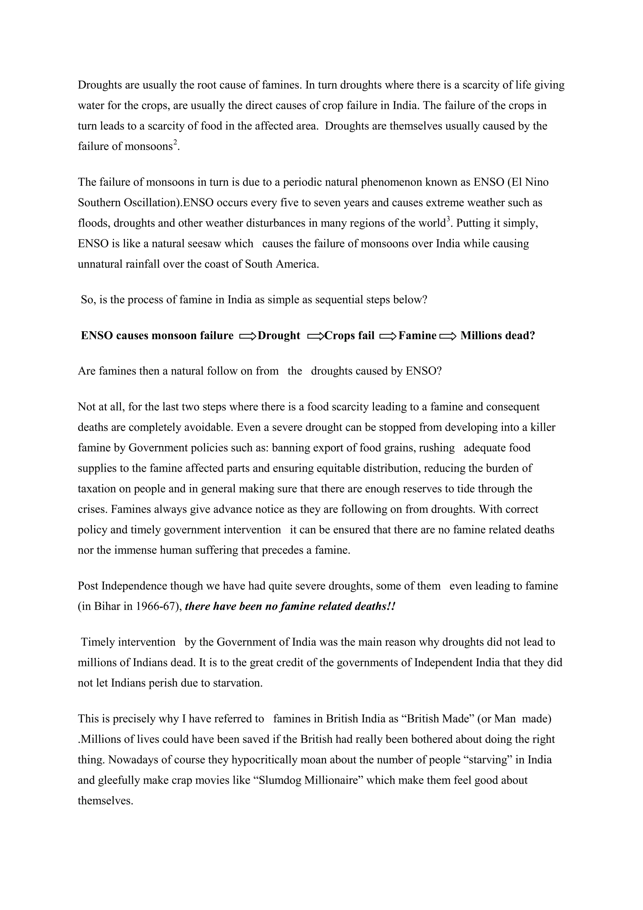 From 1760 to 1943, India experienced devastating famines attributed to British colonial policies, resulting in the deaths of over 85 million people, often considered genocides. The document discusses the causes of these famines, emphasizing government negligence and highlighting that no famine-related deaths occurred post-independence due to timely intervention by the Indian government. It critiques the ideological framework of the British Empire, portraying the suffering of Indians as a result of dehumanization and profit-driven policies, with an assertion that famines were largely preventable tragedies.