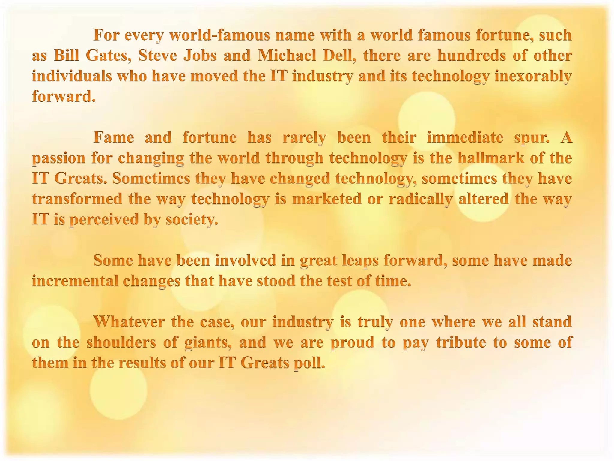 This document profiles several influential figures in the history of computing and the internet. It discusses the contributions of pioneers like Steve Jobs, Tim Berners-Lee, Bill Gates, Linus Torvalds, and others who developed early operating systems, programming languages, search engines, e-commerce sites, and more. It also mentions entrepreneurs who founded influential technology companies like Microsoft, Apple, Google, Oracle, and others.