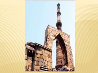 The document discusses several famous historical monuments and structures in India. It provides brief descriptions of the Taj Mahal, Bibi Ka Makbara, Humayun's Tomb, Qutub Minar, Agra Fort, Charminar, Golden Temple, and Ajanta Caves. For each site, it mentions the location, historical context, key architectural features, and the religious or cultural significance. The monuments represent important examples of Mughal, Islamic, Hindu, and Buddhist architecture spanning several centuries.