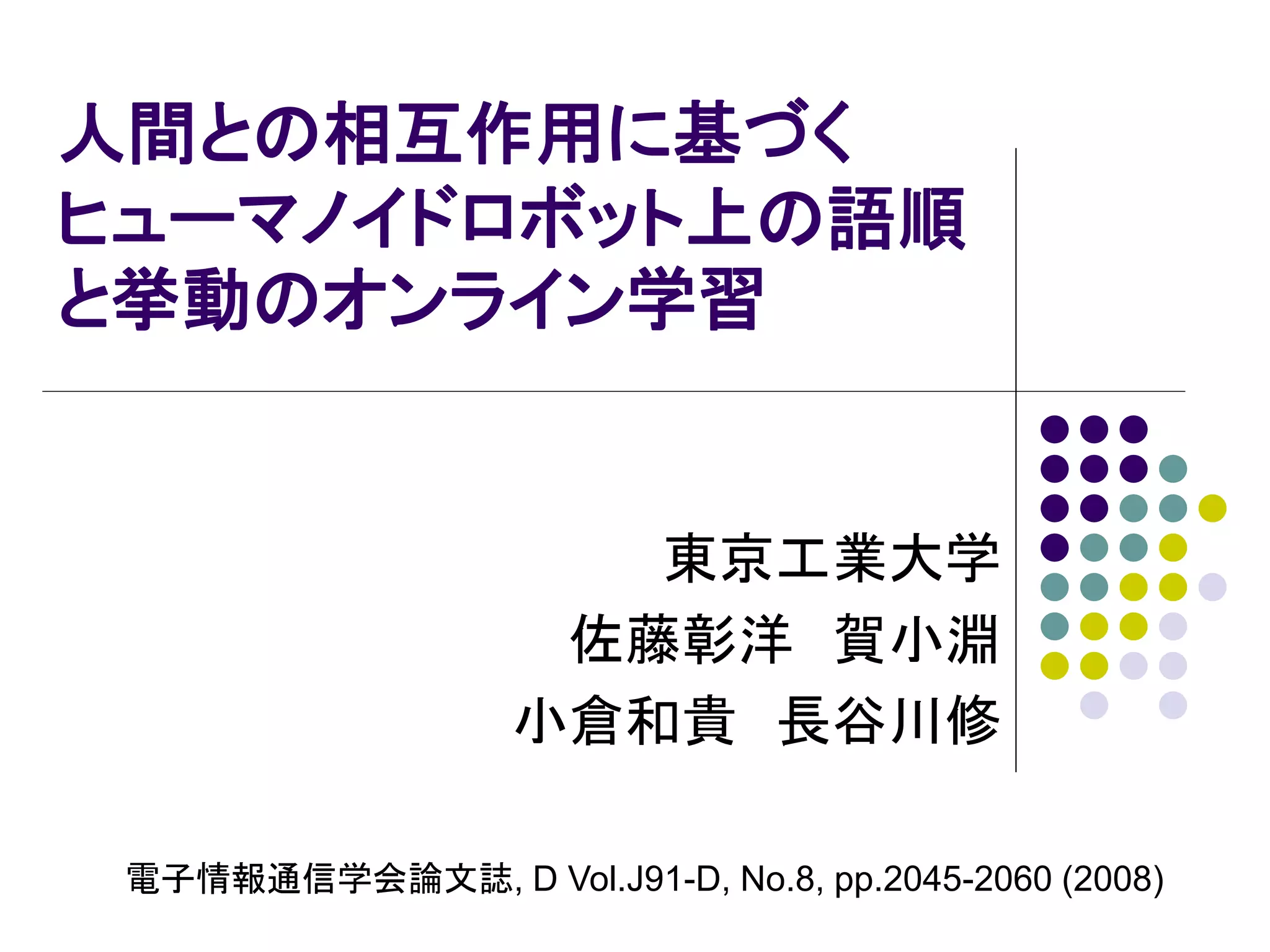 ロボットによる言語獲得とインタラクション ~ロボットの”gaga to water”~(長井隆行) PDF