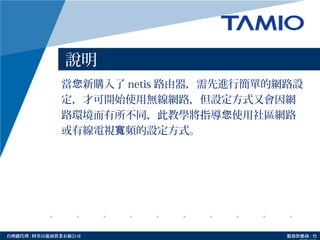 本文件为netis路由器连接设定指南,涵盖如何通过特定步骤登录路由器、设置DHCP和无线网络等基础设置。用户需按照步骤检查连接状态并可根据需要调整LAN IP及其他高级设置。文档包含详细说明以确保用户能够顺利完成网络配置。