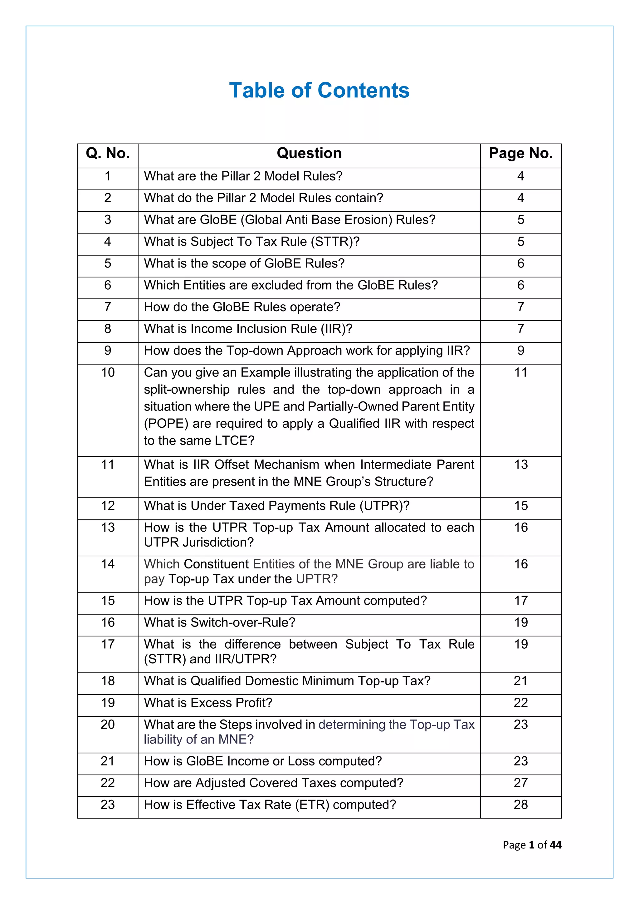 The document outlines the OECD's Pillar 2 model rules designed to ensure that multinational enterprises (MNEs) with revenues above EUR 750 million pay a minimum tax rate of 15% on their income in each jurisdiction. It details the structure of the rules, including the Income Inclusion Rule (IIR) and the Under Taxed Payments Rule (UTPR), and discusses their implications for entities' taxation and operations globally. Additionally, it addresses the role of developing countries and potential benefits under these rules.