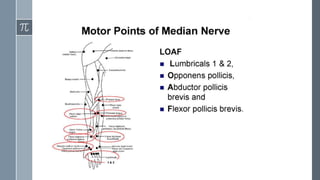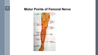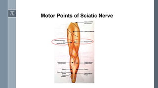 This document provides information about faradic current, including its nature, therapeutic and physiological effects, techniques of application, indications, contraindications, and clinical applications. It describes faradic current as an asymmetrical alternating current with a pulse duration of 0.1-1 ms and frequency of 30-100 Hz. The document discusses the effects of faradic current such as stimulation of sensory and motor nerves and reduction of swelling and pain. It outlines various methods and techniques of faradic current application for diagnostic and therapeutic purposes, as well as precautions and potential dangers of its use.