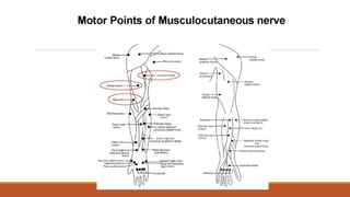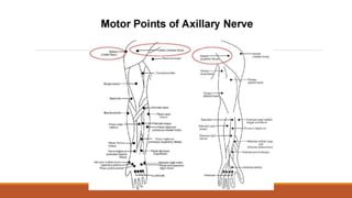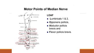 Faradic currents are short duration, interrupted biphasic currents used therapeutically. They stimulate motor nerves causing muscle contraction. Faradic currents have several effects including sensory nerve stimulation, motor nerve stimulation, and chemical changes in the cell membrane. They are used clinically to facilitate muscle contraction, strengthen muscles, and improve range of motion. Contraindications include skin lesions and certain dermatological conditions. Faradic currents are applied using group muscle stimulation or motor point stimulation techniques. Precautions must be taken to avoid burns and ensure appropriate stimulation parameters.