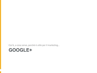 Google+ è un social network di Google con circa 400 milioni di iscritti, che combina aspetti di rete sociale e interesse, al contrario di Facebook. Rispetto ad altre piattaforme, Google+ offre maggiore libertà agli utenti e integrazione con altri servizi Google. Le aziende possono utilizzare Google+ per generare traffico, raggiungere nuove nicchie di mercato e costruire la loro brand awareness attraverso contenuti mirati e interazioni con gli influencer.