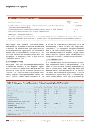 2. Diagnosis is based on clinical signs and symptoms, but can be confirmed through throat culture or rapid antigen detection testing. The modified Centor score helps determine the likelihood of GABHS and the need for testing or treatment.