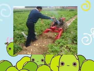 This document discusses farm inputs and labor required for horticulture. It includes clues to guess hidden words related to farm inputs like seeds, fertilizer, and insecticides. It also lists 5 farm activities that require labor: plowing, clearing land, harrowing, digging holes, and weeding.