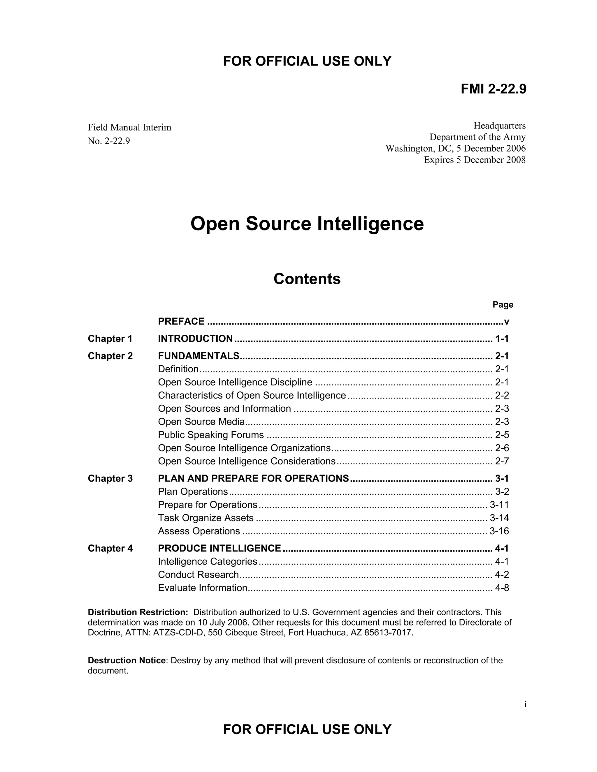 This chapter defines open source intelligence (OSINT) and describes its fundamentals, including: