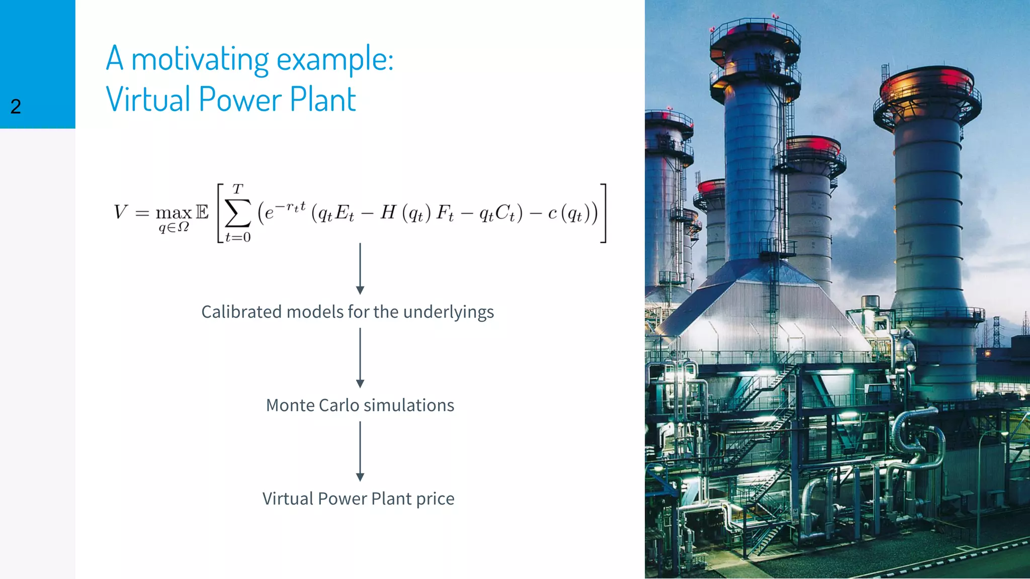 The document discusses the fast calibration of two-factor models for energy options pricing, particularly in relation to virtual power plants. It covers model choice, calibration methodologies, and evaluates models using historical data from the German electricity market and the Dutch gas market. Additionally, it highlights achievements in computational efficiency and suggests future developments such as testing new models and incorporating stochastic volatility.