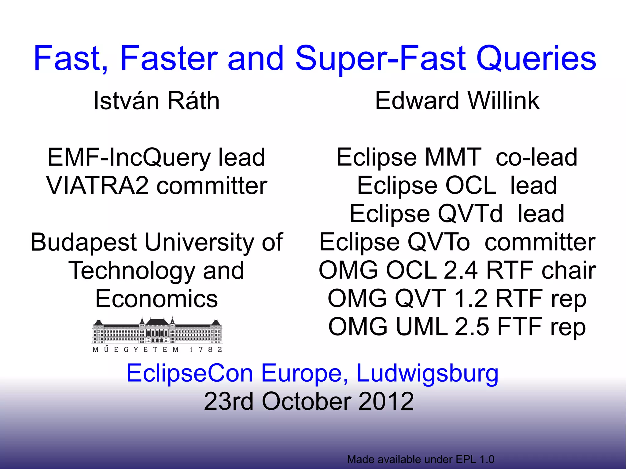 Faster OCL queries use an OCL Virtual Machine with efficient dispatch tables to improve performance over code generation alone.