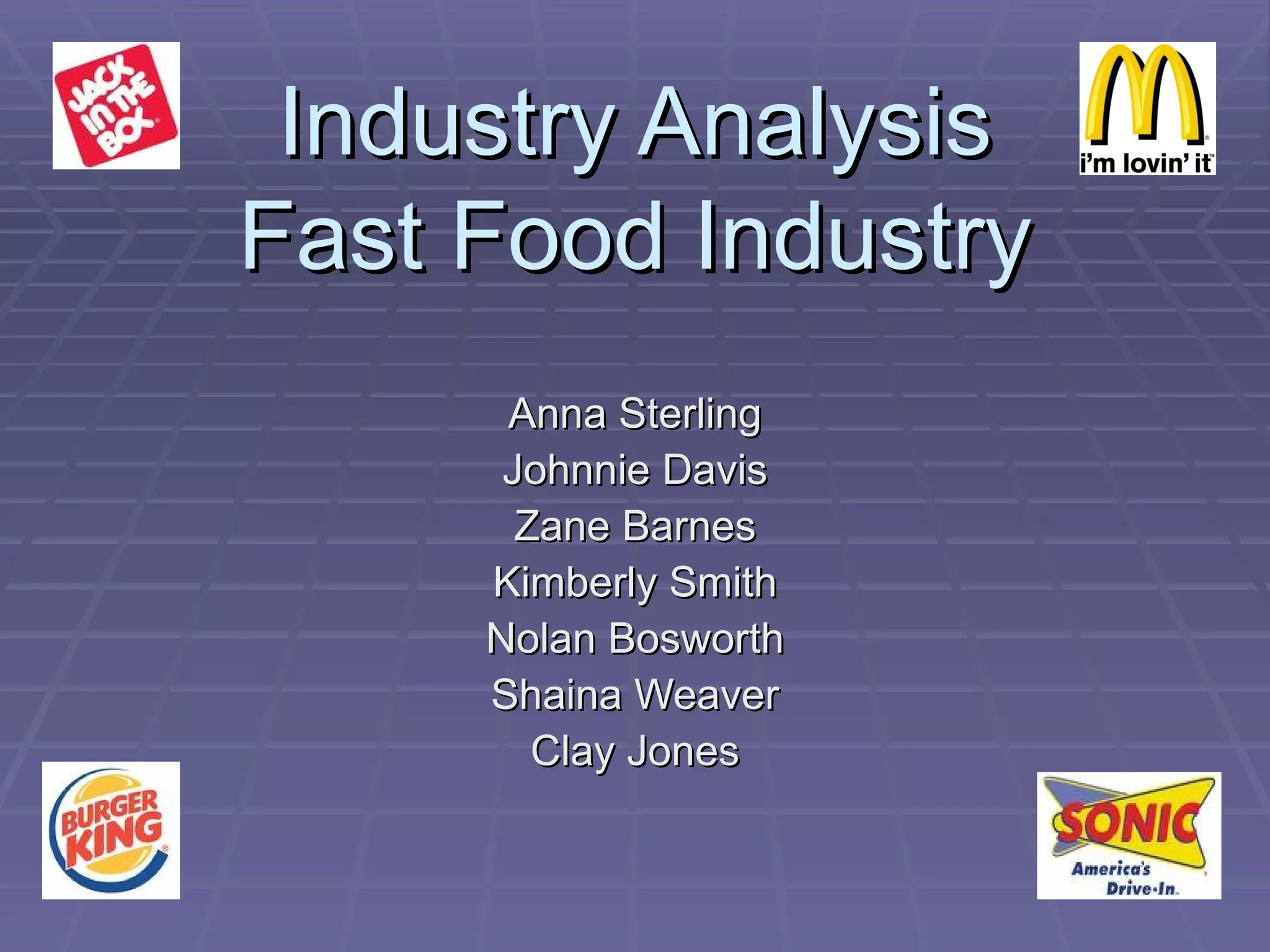 The document provides an overview of the fast food industry including its history, major competitors, industry details, economic and social factors, and financial performance of key chains. It discusses the highly competitive nature of the industry and key success factors such as differentiation, cost control, and brand recognition. The outlook is that the quick service restaurant segment will remain an important part of the economy despite economic challenges if chains continue innovating and providing value.
