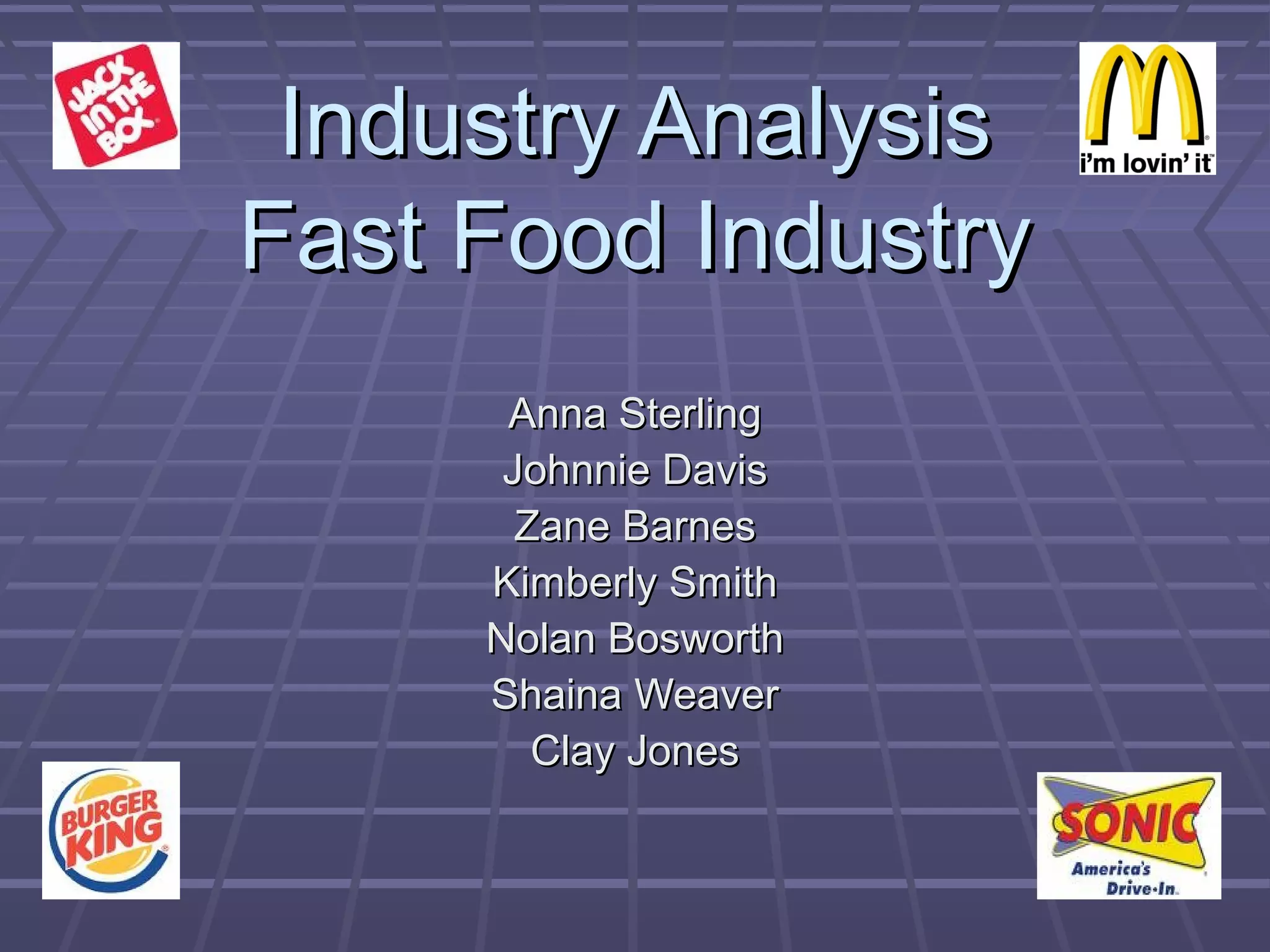 The document provides an overview of the fast food industry including its history, major competitors, and current state. It discusses how the industry is made up of about 200,000 restaurants generating over $120 billion in annual revenue. While highly fragmented, the top 50 companies hold 25% of total sales. The industry is also highly labor intensive, with the average annual revenue per worker being just under $40,000. The document then analyzes the industry using Porter's Five Forces model to evaluate the competitive environment and factors like threat of new entrants, bargaining power of customers, and threat of substitute products.