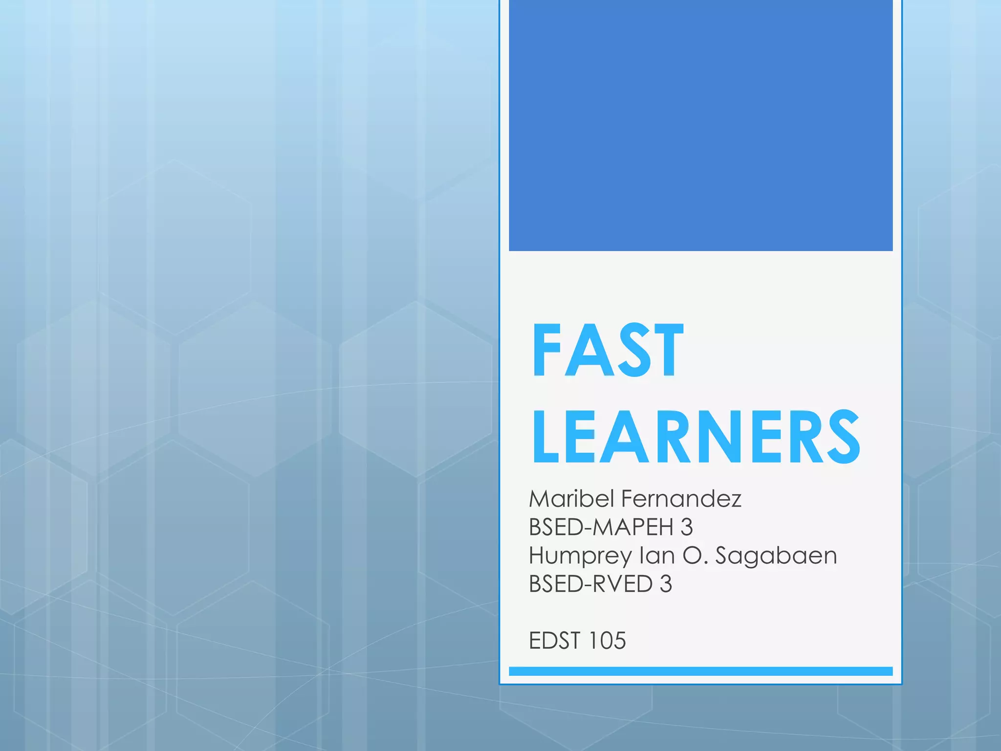 The document discusses fast learners, who are people that learn lessons, topics, or concepts at a faster rate than others. Fast learning is a characteristic of gifted learners. Fast learners exhibit certain learning characteristics like advanced vocabulary, strong reasoning skills, intense curiosity, and originality. They also show behavioral traits such as perfectionism, success-orientation, and boredom with repetition. The document provides teaching strategies for fast learners, such as giving them more complex material and independent projects, allowing diverse problem solving, and reminding them to be patient with other students.