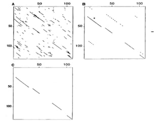 FASTA is a program for rapidly aligning protein and DNA sequences. It searches for matching k-tuples or sequence words and builds a local alignment based on these matches. It identifies the 10 best matching regions through k-tuple screening, joins nearby matches, and finds the highest density regions. It generates longer regions of identity and recalculates scores, with INITN and OPT scores used to rank database matches. Sensitivity refers to the ability to locate distantly related family members with limited similarity.