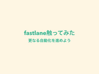 Test & Deploy)に加えて、masterブランチのマージからiTCへ の申請作業まで全て自動化する事が出来る。(工夫は必要、iTC申請時のバー ジョンアップについての説明文言をコミットメッセージから取得するようにす るとか) • アプリ申請代行時に申請時の入力内容を洗い出せるので顧客に準備してもらう 内容を伝えやすい、しかもそのまま実行出来る。(ただ、個人的には申請代行自 体はお客様自身で行う方が良いと思ってます) • AppleがCLIツール用意してない部分をCLIツール化しただけあって使用頻度は少 なめ、便利だけど使わなくても問題はない、しかし自動化できることは自動化 しよう。fastlane自体を使わずともその中の一部のツールだけ使うというのも良 い。