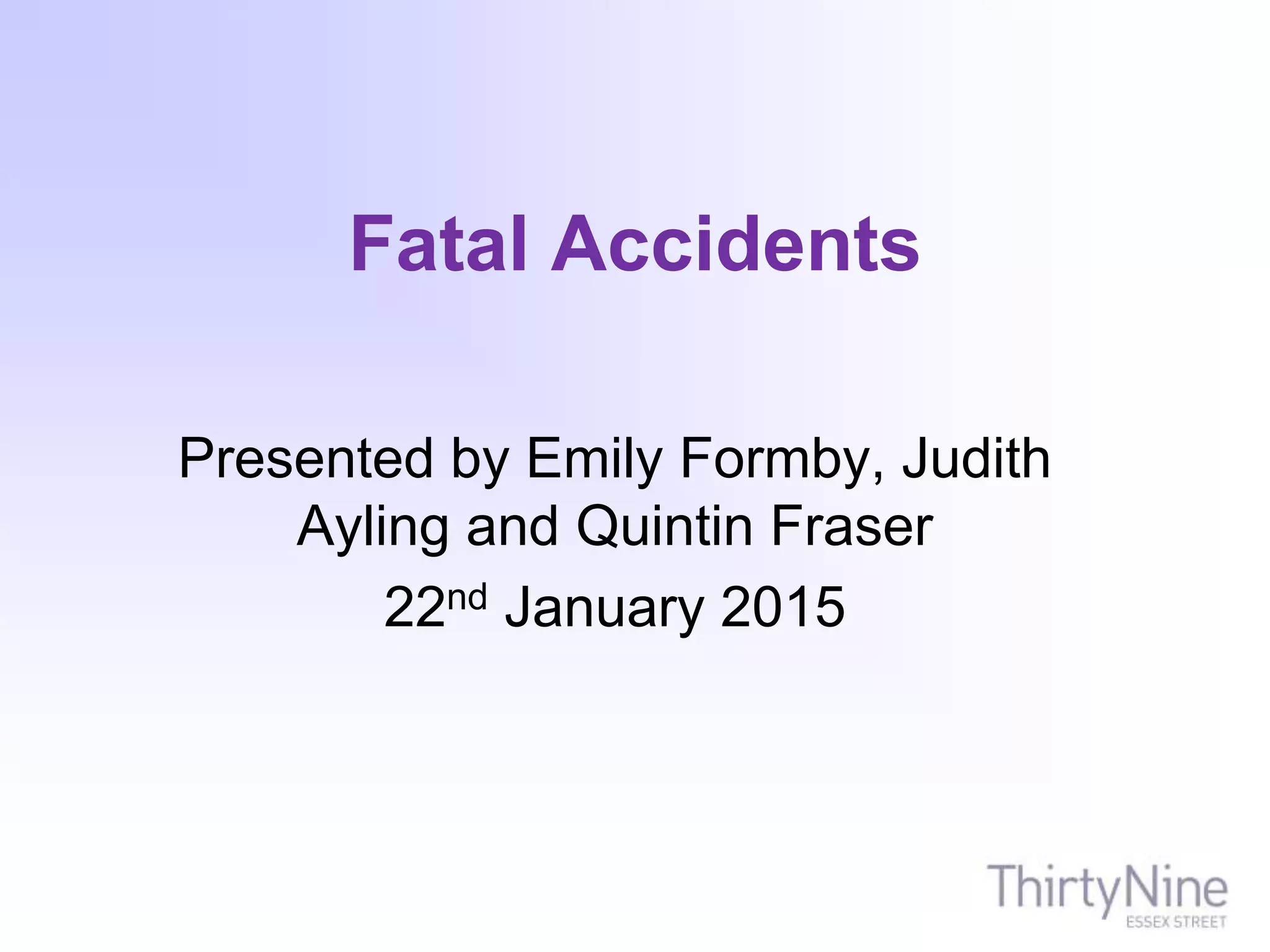 This document summarizes potential claims that can be brought under UK law following a fatal accident. There are three main statutes that allow claims: 1) the Law Reform (Miscellaneous Provisions) Act 1934, which covers claims on behalf of the deceased estate; 2) the Fatal Accidents Act 1976, which covers claims made by dependents of the deceased; and 3) the Human Rights Act 1998, in conjunction with Article 2 of the European Convention on Human Rights. The Fatal Accidents Act outlines who can bring a claim and the categories of individuals that are considered dependents. Claims assess lost financial support and lost services to dependents in determining damages.