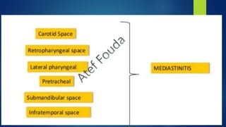 - The fascial spaces of the maxillofacial region and how infection can spread between them.