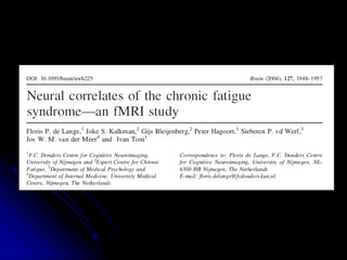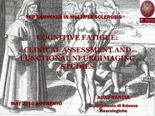 Il documento analizza la fatica cognitiva nei pazienti affetti da sclerosi multipla, evidenziando la complessità della definizione e i vari aspetti neuropsicologici e neurobiologici associati. Si discute l'impatto della fatica cognitiva sulla performance durante compiti cognitivi e le differenze tra pazienti con e senza deficit cognitivi. Inoltre, lo studio utilizza tecniche di neuroimaging per valutare i patterns cerebrali e la connettività che influiscono sulla percezione della fatica nei pazienti affetti da sclerosi multipla.