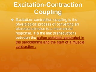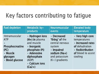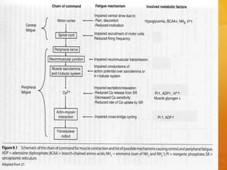 The document explores the physiological process of excitation-contraction coupling, defines fatigue as decreased muscular activity from repeated stimuli, and discusses its causes including central and peripheral factors. It details different types of fatigue, particularly noting the prevalence and impact of fatigue in patients with multiple sclerosis, highlighting various assessment scales used to measure fatigue levels. Additionally, it reviews a study on low-level laser therapy's effects on exercise-induced skeletal muscle fatigue, concluding that it can enhance endurance and reduce certain biochemical markers post-exercise.